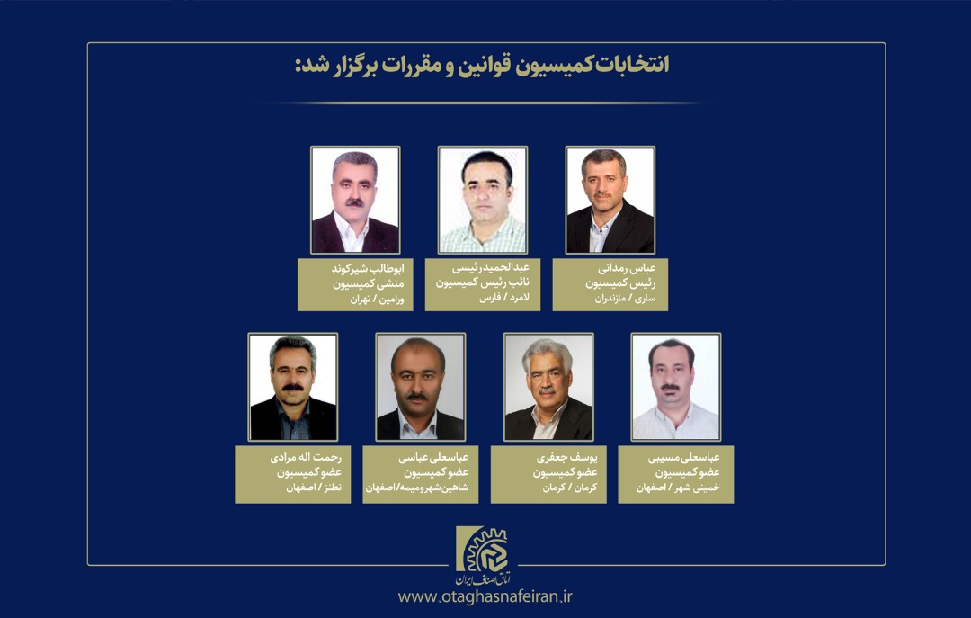 به گزارش اتاق اصناف ایران، بر اساس این انتخابات داخلی که امروز مورخ ۳۰ بهمن ۱۴۰۰ برگزار شد، عباس رمدانی (نماینده اتاق اصناف ایران در استان مازندران) به عنوان رئیس، عبدالمجید رئیسی (نماینده اتاق اصناف ایران در استان فارس) به عنوان نائب رئیس، ابوطالب شیرکوند (نماینده اتاق اصناف ایران در استان تهران) به عنوان منشی،عباسعلی عباسی (نماینده اتاق اصناف ایران در استان اصفهان)، عباسعلی مسیبی (نماینده اتاق اصناف ایران در استان اصفهان)، یوسف جعفری (نماینده اتاق اصناف ایران در استان کرمان) و رحمتاله مرادی (نماینده اتاق اصناف ایران در استان اصفهان) به عنوان عضو انتخاب شدند. /ع/