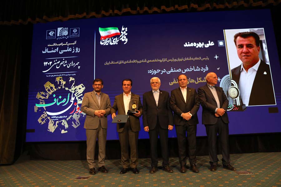 در جریان برگزاری آیین گرامیداشت روز ملی اصناف (۱۴۰۴) که با حضور محمدرضا عارف، معاون اول رئیس جمهور، محمد اتابک وزیر صمت و معاونان وزارت صمت، محمدصادق مفتح، جانشین وزیر صمت در امور بازرگانی، نمایندگان مجلس شورای اسلامی، رئیس و هیات رئیسه اتاق اصناف ایران، رئیس و هیات رئیسه اتاق اصناف تهران، هیات نمایندگان اتاق اصناف ایران و برخی اتحادیه های تهران در سالن خواجهنصیر مرکز همایشهای بینالمللی صدا و سیما برگزار شد، از فعالان شاخص صنفی در حوزههای مختلف با اهداء تندیس و لوح تقدیر، تجلیل شد.