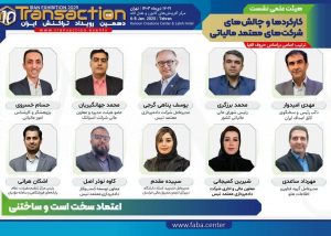 نشست «کارکردها و چالشهای شرکتهای معتمد مالیاتی» با عنوان «اعتماد سخت است و ساختنی» که با اسپانسری شرکت دادهپردازی معتمد تیس، در دهمین رویداد تراکنش ایران برگزار میشود.