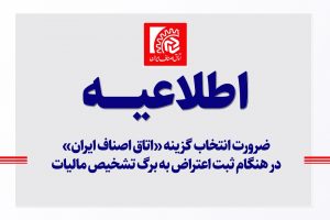 اطلاعیه// ضرورت انتخاب گزینه «اتاق اصناف ایران» در هنگام ثبت اعتراض به برگ تشخیص مالیات