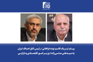 پیام تبریک رئیس اتاق اصناف ایران به سید علی مدنی زاده؛ وزیر امور اقتصادی و دارایی