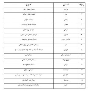 منابع دریافت آمار و آثار شهدا می تواند از طریق اتاق، اتحادیه، بنیاد شهید، سازمان حفظ آثار، معاونت حفظ آثار سپاه استان و ۸۲۳۰; باشد.