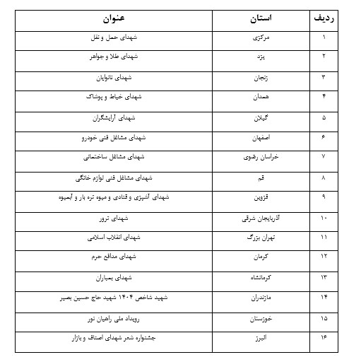 ۸۲۱۱; به منظور شناسایی دقیق شهدای اصناف و بازار ضروری است به قید فوریت آمار قطعی شهدای هر استان به تفکیک شهرستان و شغل طبق فرمی که تهیه شده است تا تاریخ ۳۰ فروردین۱۴۰۴ تکمیل و به این سازمان ارسال شود.